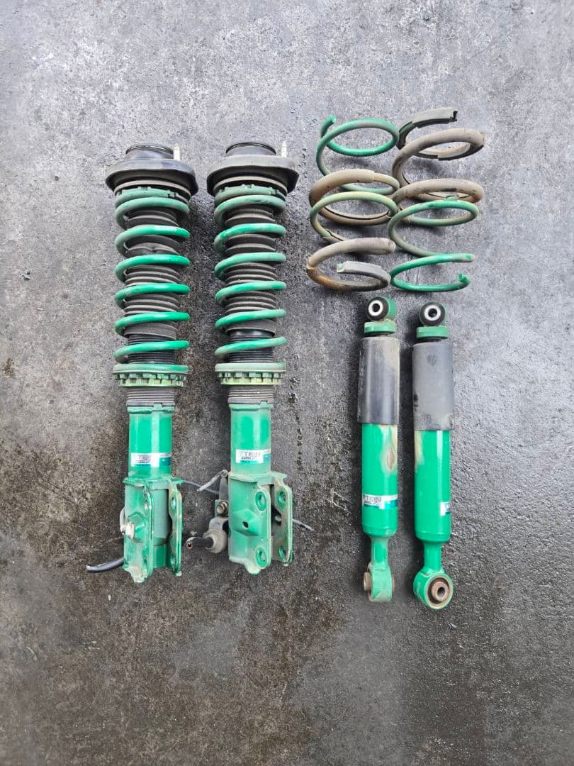 TRDターボ専用パーツになりますので流用の際はご注意ください。汚れ、擦れ、サビ等あります。社外品を組み込む事にした為、不要になったので出品致します。特に問題なく使用していました。フロントは、バネが組み込まれている為、減衰未確認です。リアアブソーバーは、押し込むと手応えがあり、抜けた感じはありません。〇車両情報・車種 ヴィッツ RS TRD TURBO 4ドア・型式 NCP13・エンジン型式 1NZ-FE・年式 2003年(平成15年)・走行距離 48566km画像のものが全てです。状態は画像にてご判断ください。中古品のためノークレーム、ノーリターンでお願い致します。